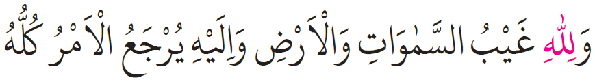 “Göklerin ve yerin gaybı yalnız Allah’a aittir. Her iş O’na döndürülür”