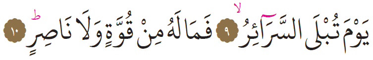 “Sırların ortaya döküldüğü günde insan için ne bir kuvvet nede yardımcı vardır.”