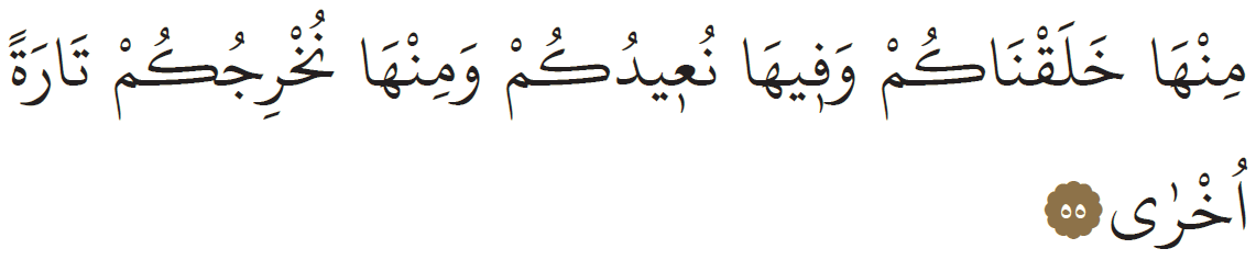“Sizi toprakdan halk ettim, oraya (toprağa) iade edeceğiz ve bir kere daha oradan (toprakdan) çıkaracağız.”