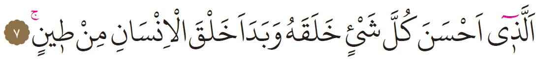 “ELLEZİ AHSENE KÜLLE ŞEYİN HALEKAHU VE BEDEE HALKAL İNSANİ MİN TİN”